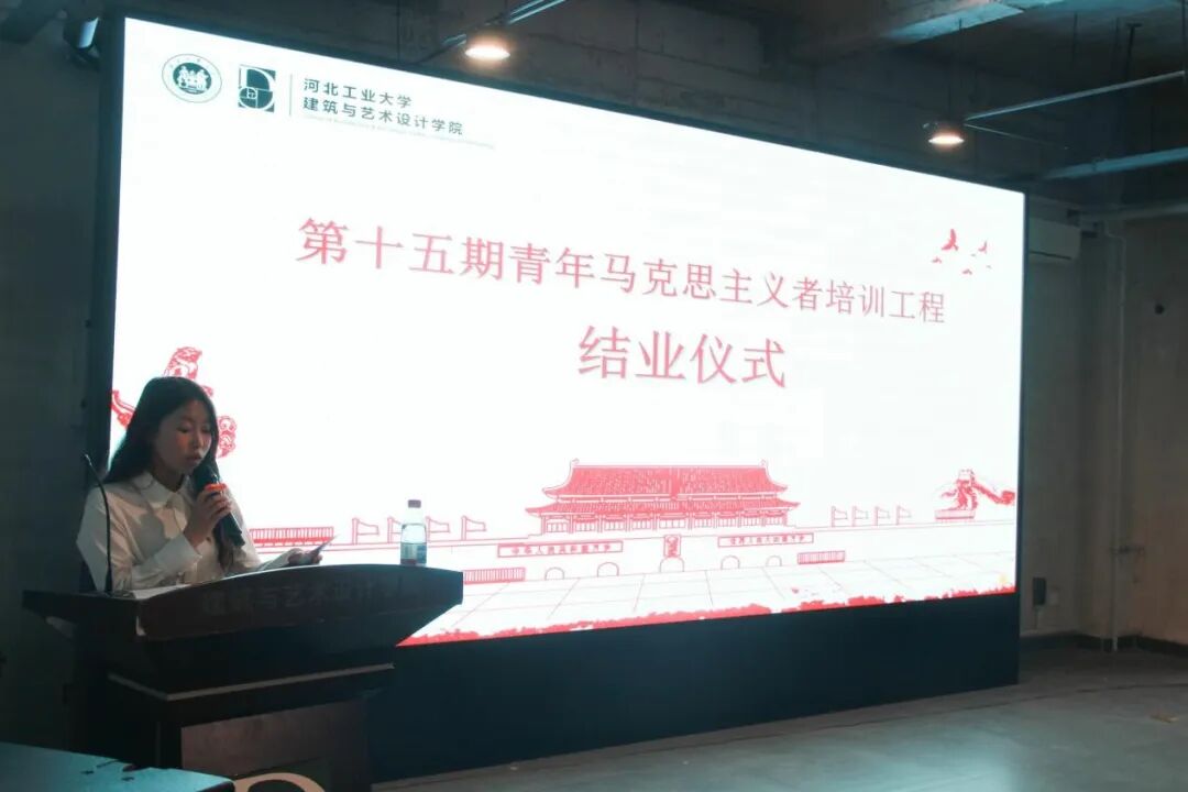 在结业展示环节,青马工程八个班级依次登台,以饱满的热情和昂扬的斗志,展现了建艺学子的青春风貌与赤子之心。
