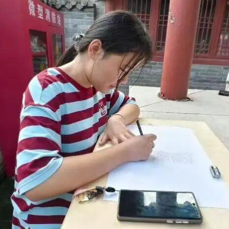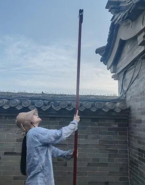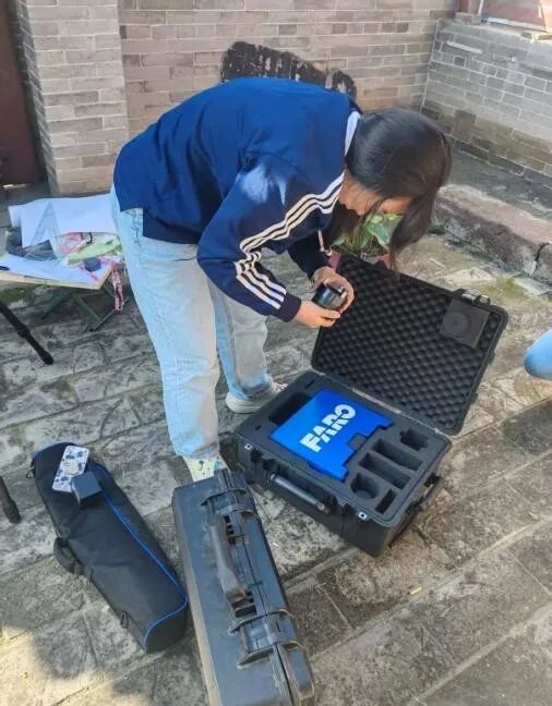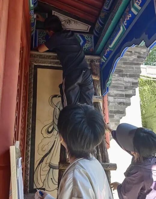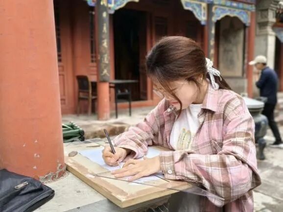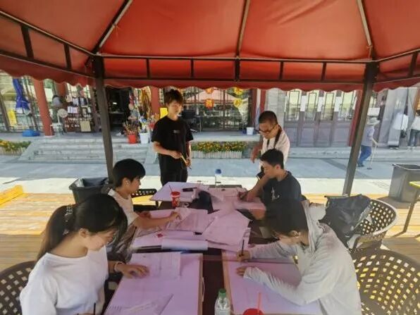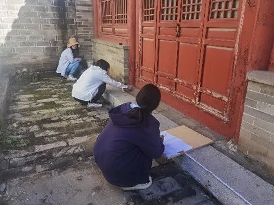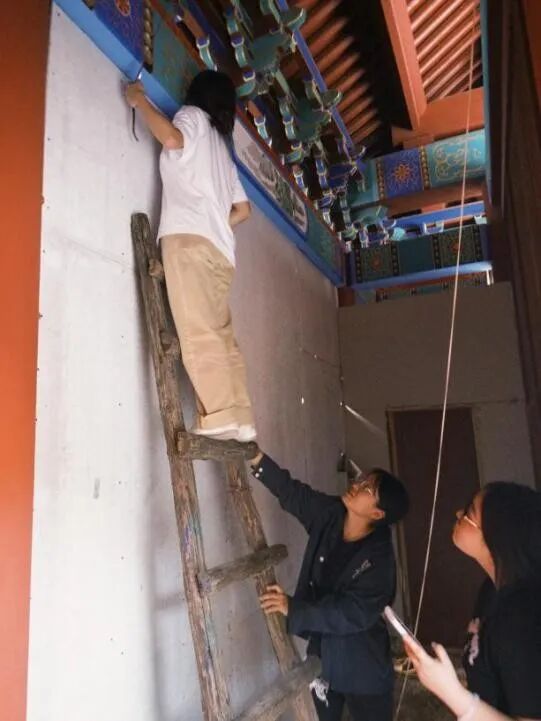 测绘现场,有人踩着晨露爬上亭子,用手持测距仪反复校准点位;有人蹲在院落一角,在绘图板上勾勒每一片瓦的弧度,铅笔划过纸面的沙沙声,混着风掠过耳边的轻响。每一个数据的敲定,都藏着同学们对精度的执着。