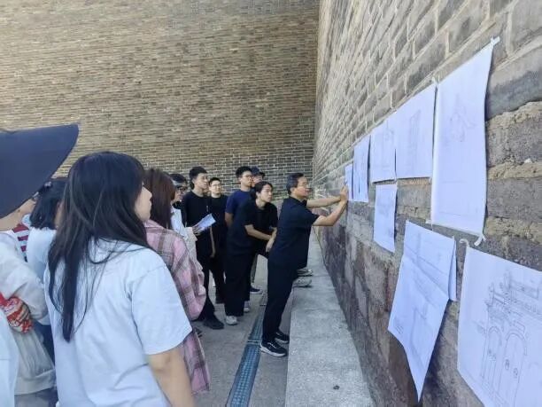 实地调查与测绘是课程的核心环节,师生团队以专业标准开展实践,走进传统建筑现场,围绕这座长城关隘的墙体、城楼及周边附属建筑,用专业的眼光和严谨的态度,对每一处细节进行细致的测量、记录与绘制。